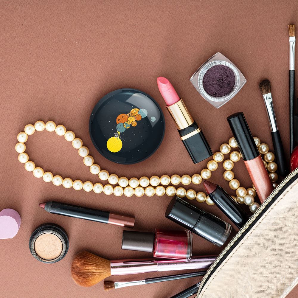 آینه های جیبی فضایی خندالو دایره ای به قطر 7.5 سانتی متر می باشد که نه خیلی بزرگ و غیر قابل استفاده در کیف آرایشی ست و نه خیلی کوچک که تصویر خاصی در آن مشاهده نشود. سایزی استاندارد و کارآمد دارد و مناسب قرار گیری در کیف لوازم آرایش و کیف های کوچک دستی نیز هست.