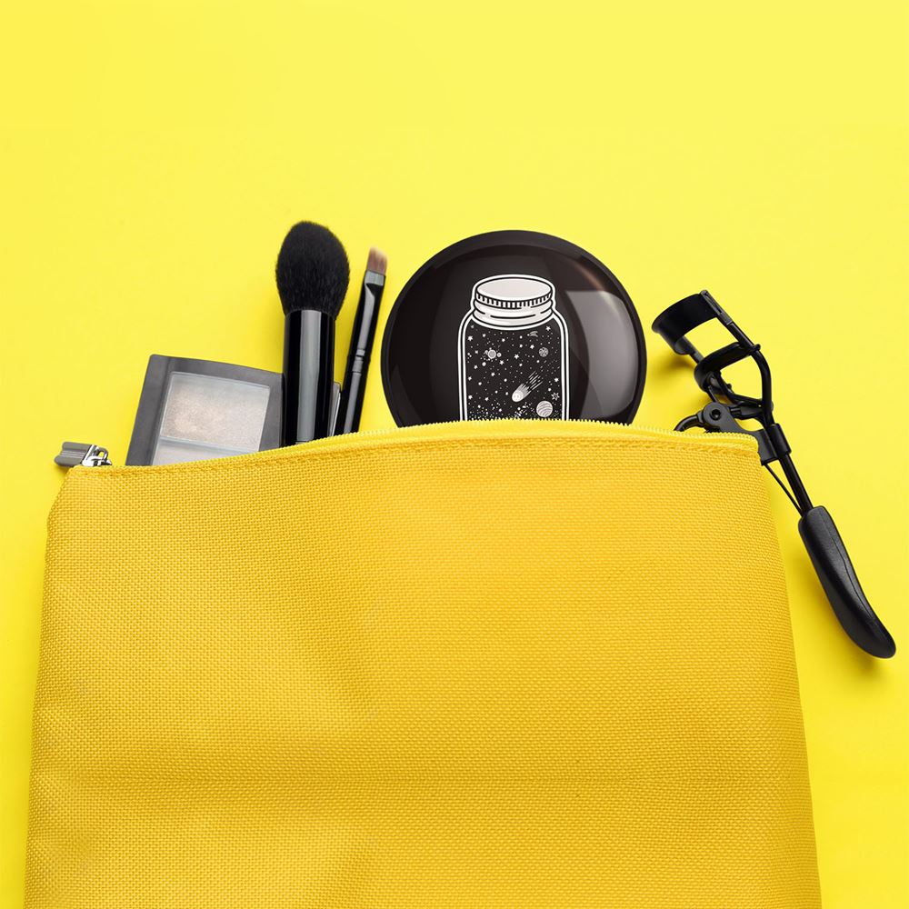 آینه های جیبی فضایی خندالو دایره ای به قطر 7.5 سانتی متر می باشد که نه خیلی بزرگ و غیر قابل استفاده در کیف آرایشی ست و نه خیلی کوچک که تصویر خاصی در آن مشاهده نشود. سایزی استاندارد و کارآمد دارد و مناسب قرار گیری در کیف لوازم آرایش و کیف های کوچک دستی نیز هست.