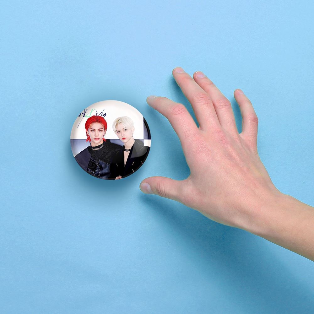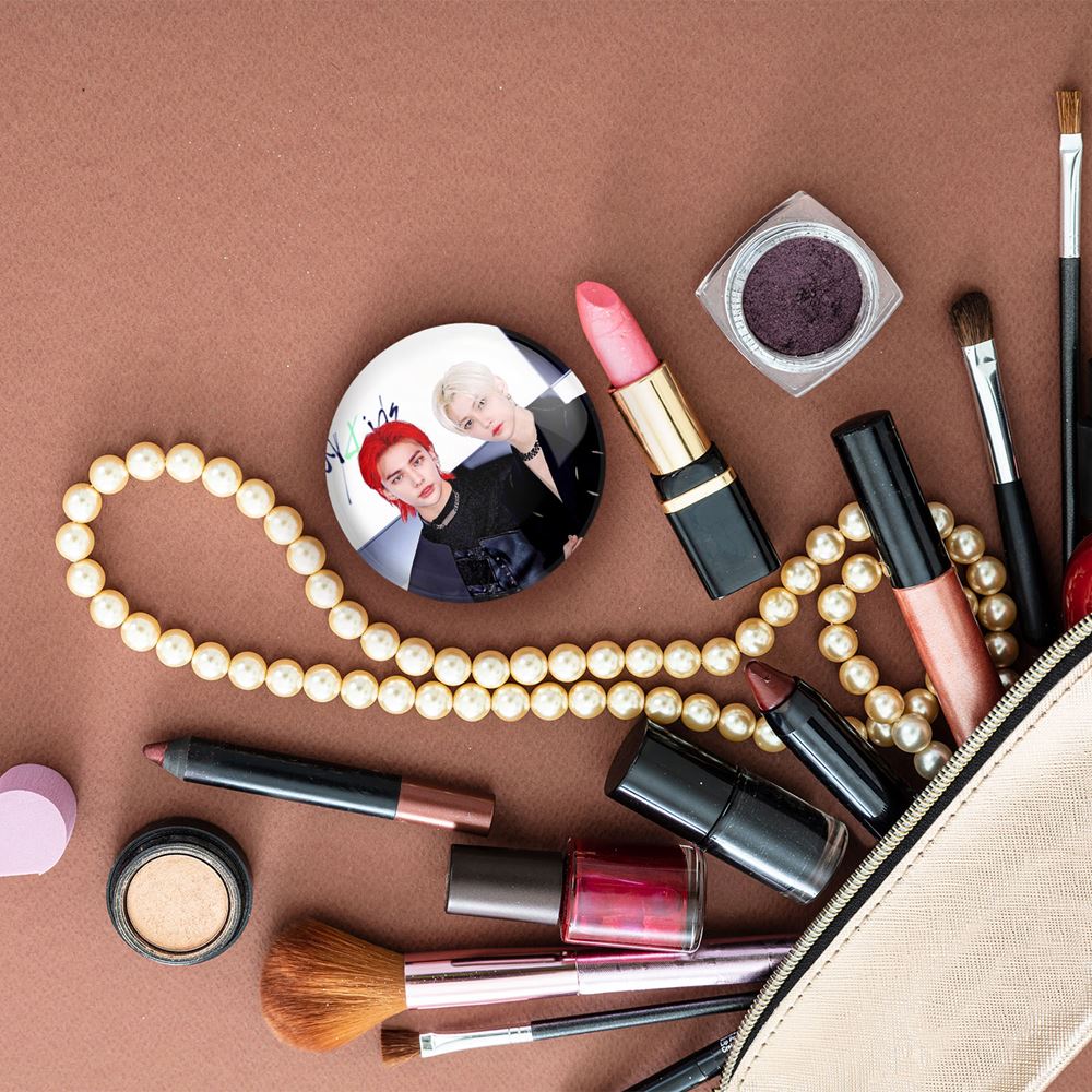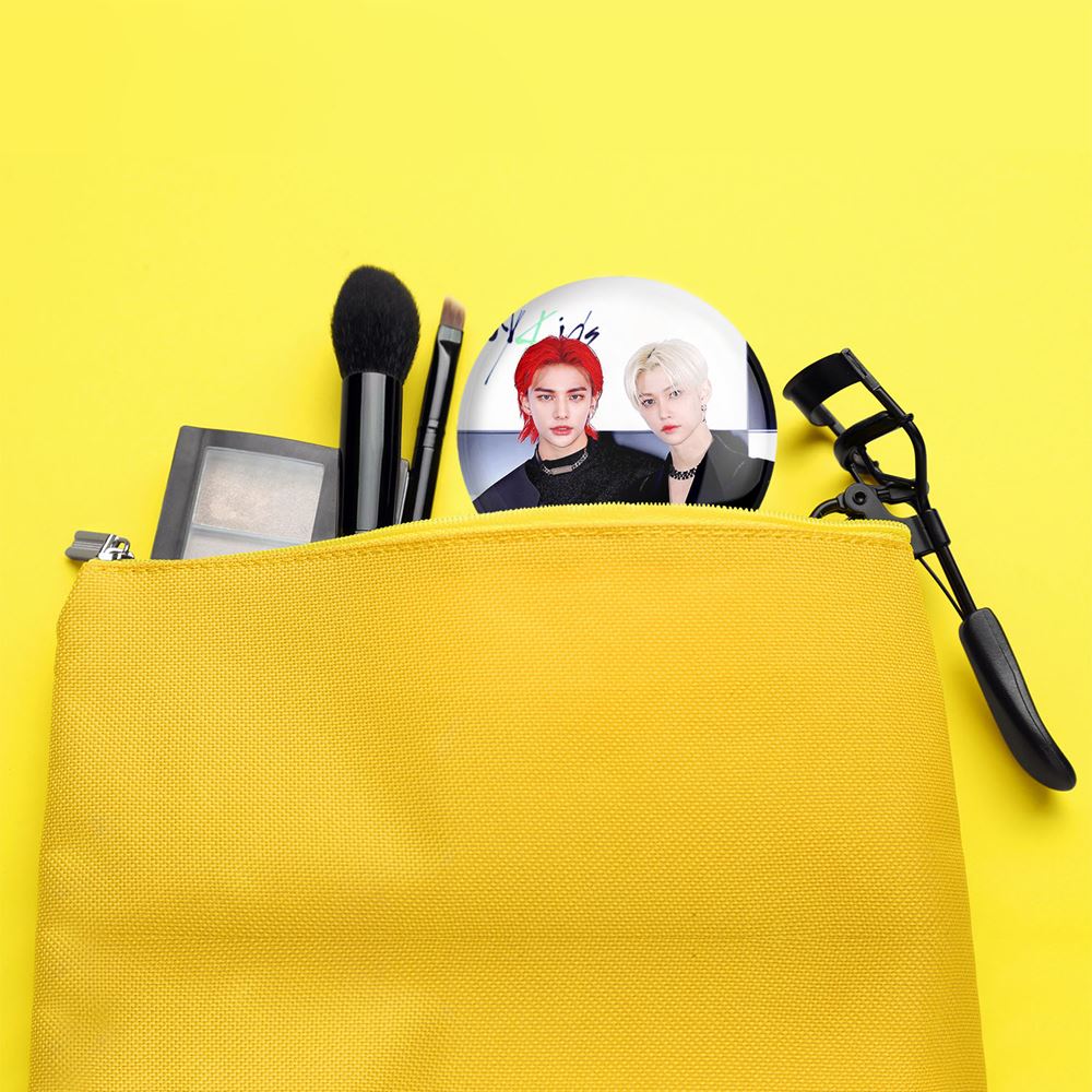 آینه های جیبی فلیکس و هیونجین گروه استری کیدز Stary Kids خندالو دایره ای به قطر 7.5 سانتی متر می باشد که نه خیلی بزرگ و غیر قابل استفاده در کیف آرایشی ست و نه خیلی کوچک که تصویر خاصی در آن مشاهده نشود. سایزی استاندارد و کارآمد دارد و مناسب قرار گیری در کیف لوازم آرایش و کیف های کوچک دستی نیز هست. بدنه ی آینه جیبی فلیکس و هیونجین گروه استری کیدز Stary Kids در قسمتی که آینه را در بر گرفته فلزی بوده و ظاهر براق و بسیار زیبایی دارد. چاپ طرح در پشت آینه بوسیله چاپگرهای دیجیتال شش رنگ با شفافیت و کیفیتی مثال زدنی انجام گرفته و با روکش لمینت حرارتی پوشیده شده که در مقابل آسیب و خط و خش مقاوم بوده و کیفیت بالایی دارد. آینه های جیبی فلیکس و هیونجین گروه استری کیدز Stary Kids خندالو با تنوع طرحی بسیار بالا، سلیقه هر نوع مخاطبی را تامین میکند.