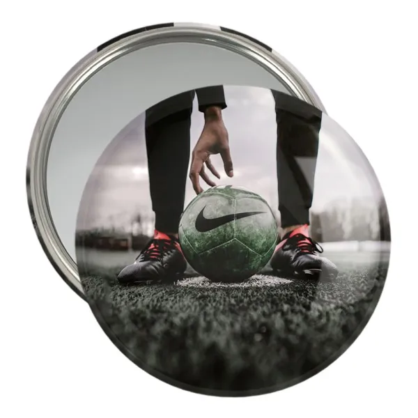 آینه های جیبی فوتبال Football خندالو دایره ای به قطر 7.5 سانتی متر می باشد که نه خیلی بزرگ و غیر قابل استفاده در کیف آرایشی ست و نه خیلی کوچک که تصویر خاصی در آن مشاهده نشود. سایزی استاندارد و کارآمد دارد و مناسب قرار گیری در کیف لوازم آرایش و کیف های کوچک دستی نیز هست.