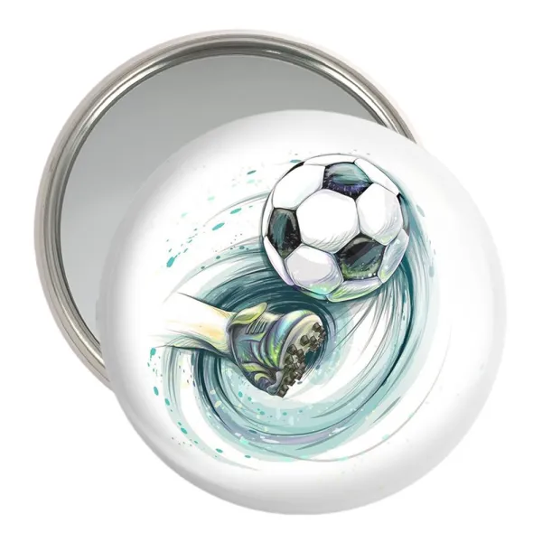 آینه های جیبی فوتبال Football خندالو دایره ای به قطر 7.5 سانتی متر می باشد که نه خیلی بزرگ و غیر قابل استفاده در کیف آرایشی ست و نه خیلی کوچک که تصویر خاصی در آن مشاهده نشود. سایزی استاندارد و کارآمد دارد و مناسب قرار گیری در کیف لوازم آرایش و کیف های کوچک دستی نیز هست. بدنه ی آینه جیبی فوتبال Football در قسمتی که آینه را در بر گرفته فلزی بوده و ظاهر براق و بسیار زیبایی دارد. چاپ طرح در پشت آینه بوسیله چاپگرهای دیجیتال شش رنگ با شفافیت و کیفیتی مثال زدنی انجام گرفته و با روکش لمینت حرارتی پوشیده شده که در مقابل آسیب و خط و خش مقاوم بوده و کیفیت بالایی دارد. آینه های جیبی فوتبال Football خندالو با تنوع طرحی بسیار بالا، سلیقه هر نوع مخاطبی را تامین میکند.