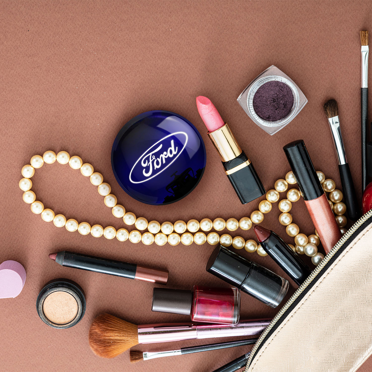 آینه های جیبی فورد Ford خندالو دایره ای به قطر 7.5 سانتی متر می باشد که نه خیلی بزرگ و غیر قابل استفاده در کیف آرایشی ست و نه خیلی کوچک که تصویر خاصی در آن مشاهده نشود. سایزی استاندارد و کارآمد دارد و مناسب قرار گیری در کیف لوازم آرایش و کیف های کوچک دستی نیز هست.