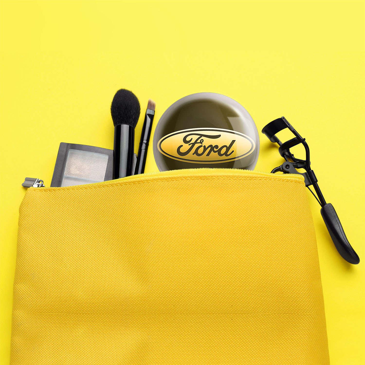 آینه های جیبی فورد Ford خندالو دایره ای به قطر 7.5 سانتی متر می باشد که نه خیلی بزرگ و غیر قابل استفاده در کیف آرایشی ست و نه خیلی کوچک که تصویر خاصی در آن مشاهده نشود. سایزی استاندارد و کارآمد دارد و مناسب قرار گیری در کیف لوازم آرایش و کیف های کوچک دستی نیز هست.