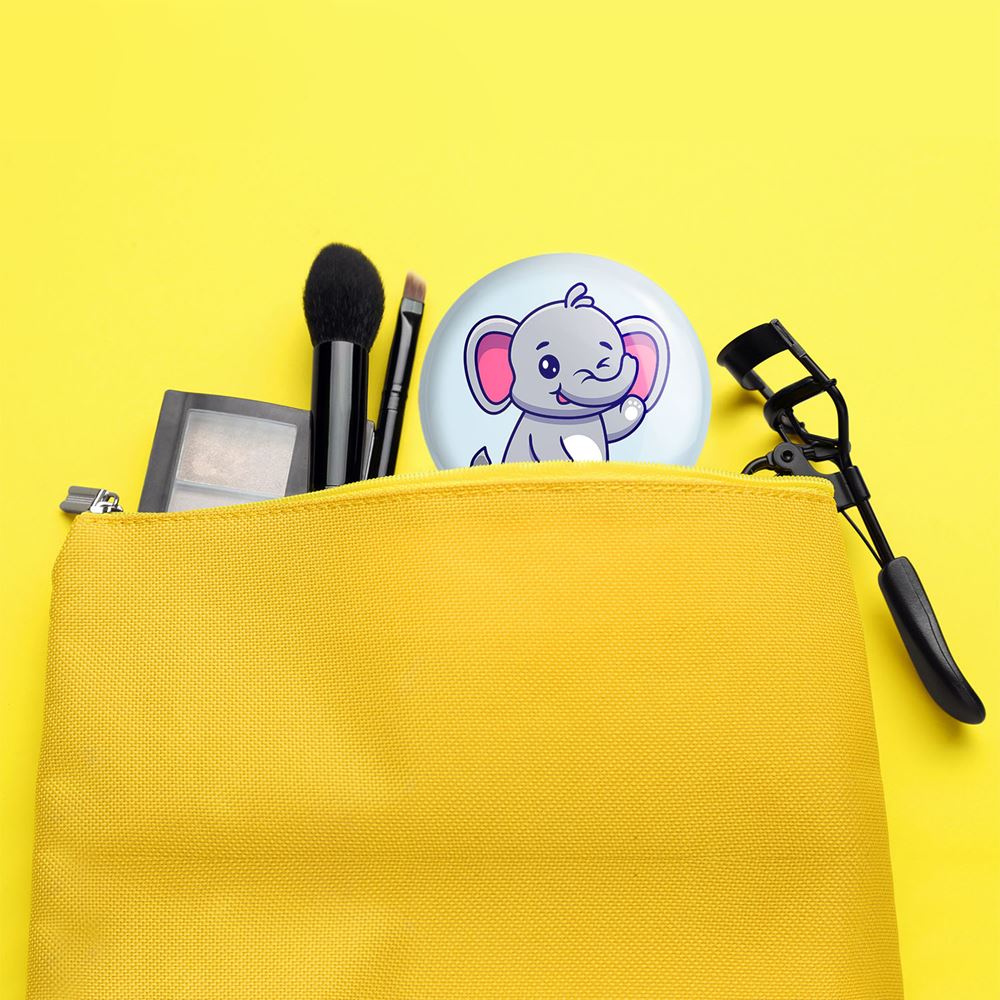 آینه های جیبی فیل کوچولو خندالو دایره ای به قطر 7.5 سانتی متر می باشد که نه خیلی بزرگ و غیر قابل استفاده در کیف آرایشی ست و نه خیلی کوچک که تصویر خاصی در آن مشاهده نشود. سایزی استاندارد و کارآمد دارد و مناسب قرار گیری در کیف لوازم آرایش و کیف های کوچک دستی نیز هست.