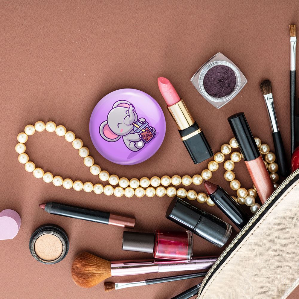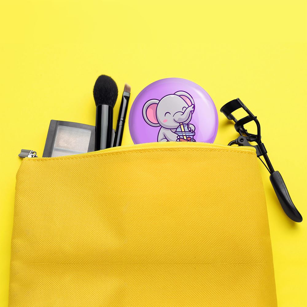 آینه های جیبی فیل کوچولو خندالو دایره ای به قطر 7.5 سانتی متر می باشد که نه خیلی بزرگ و غیر قابل استفاده در کیف آرایشی ست و نه خیلی کوچک که تصویر خاصی در آن مشاهده نشود. سایزی استاندارد و کارآمد دارد و مناسب قرار گیری در کیف لوازم آرایش و کیف های کوچک دستی نیز هست.
