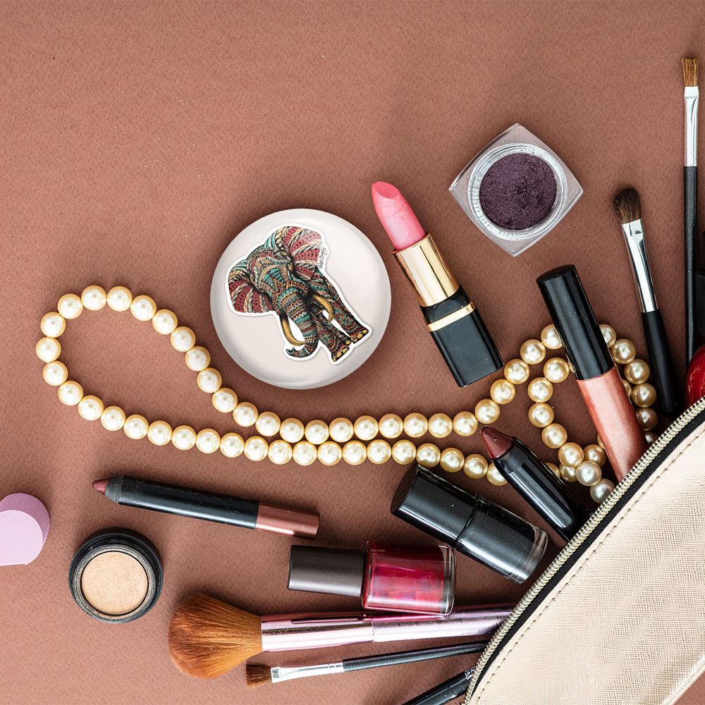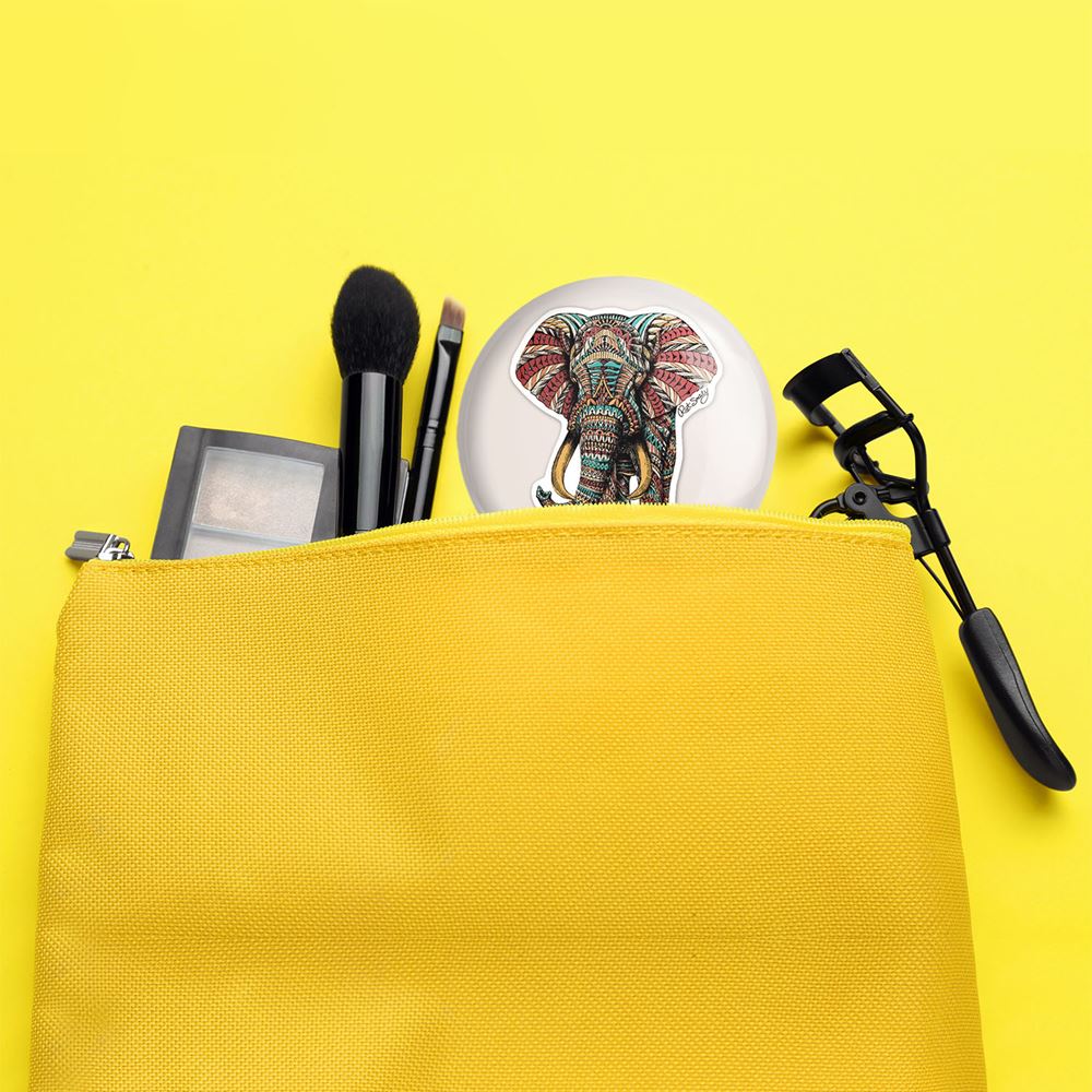آینه های جیبی فیل خندالو دایره ای به قطر 7.5 سانتی متر می باشد که نه خیلی بزرگ و غیر قابل استفاده در کیف آرایشی ست و نه خیلی کوچک که تصویر خاصی در آن مشاهده نشود. سایزی استاندارد و کارآمد دارد و مناسب قرار گیری در کیف لوازم آرایش و کیف های کوچک دستی نیز هست.