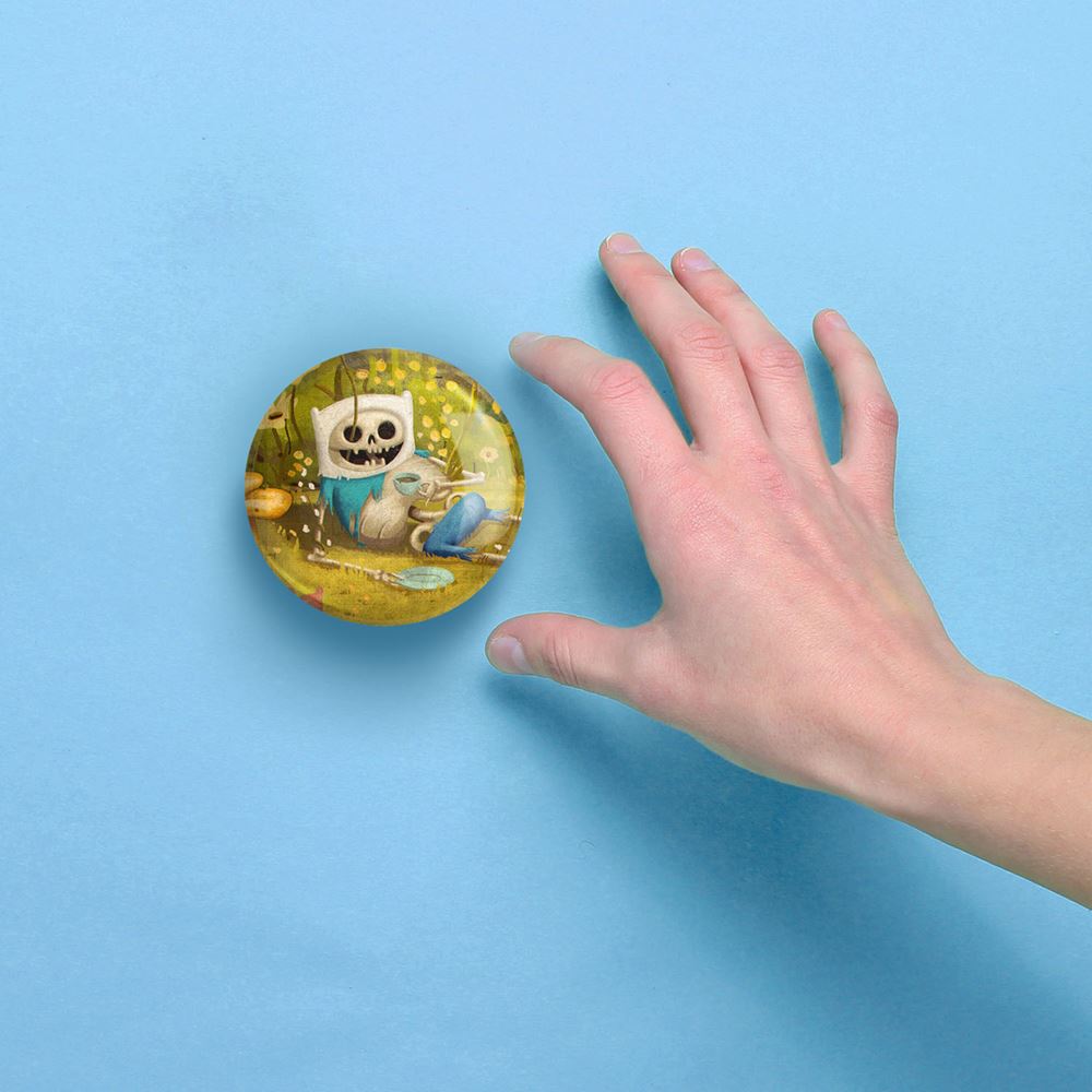 آینه های جیبی فین وقت ماجراجویی Adventure Time خندالو دایره ای به قطر 7.5 سانتی متر می باشد که نه خیلی بزرگ و غیر قابل استفاده در کیف آرایشی ست و نه خیلی کوچک که تصویر خاصی در آن مشاهده نشود. سایزی استاندارد و کارآمد دارد و مناسب قرار گیری در کیف لوازم آرایش و کیف های کوچک دستی نیز هست. بدنه ی آینه جیبی فین وقت ماجراجویی Adventure Time در قسمتی که آینه را در بر گرفته فلزی بوده و ظاهر براق و بسیار زیبایی دارد. چاپ طرح در پشت آینه بوسیله چاپگرهای دیجیتال شش رنگ با شفافیت و کیفیتی مثال زدنی انجام گرفته و با روکش لمینت حرارتی پوشیده شده که در مقابل آسیب و خط و خش مقاوم بوده و کیفیت بالایی دارد. آینه های جیبی فین وقت ماجراجویی Adventure Time خندالو با تنوع طرحی بسیار بالا، سلیقه هر نوع مخاطبی را تامین میکند.