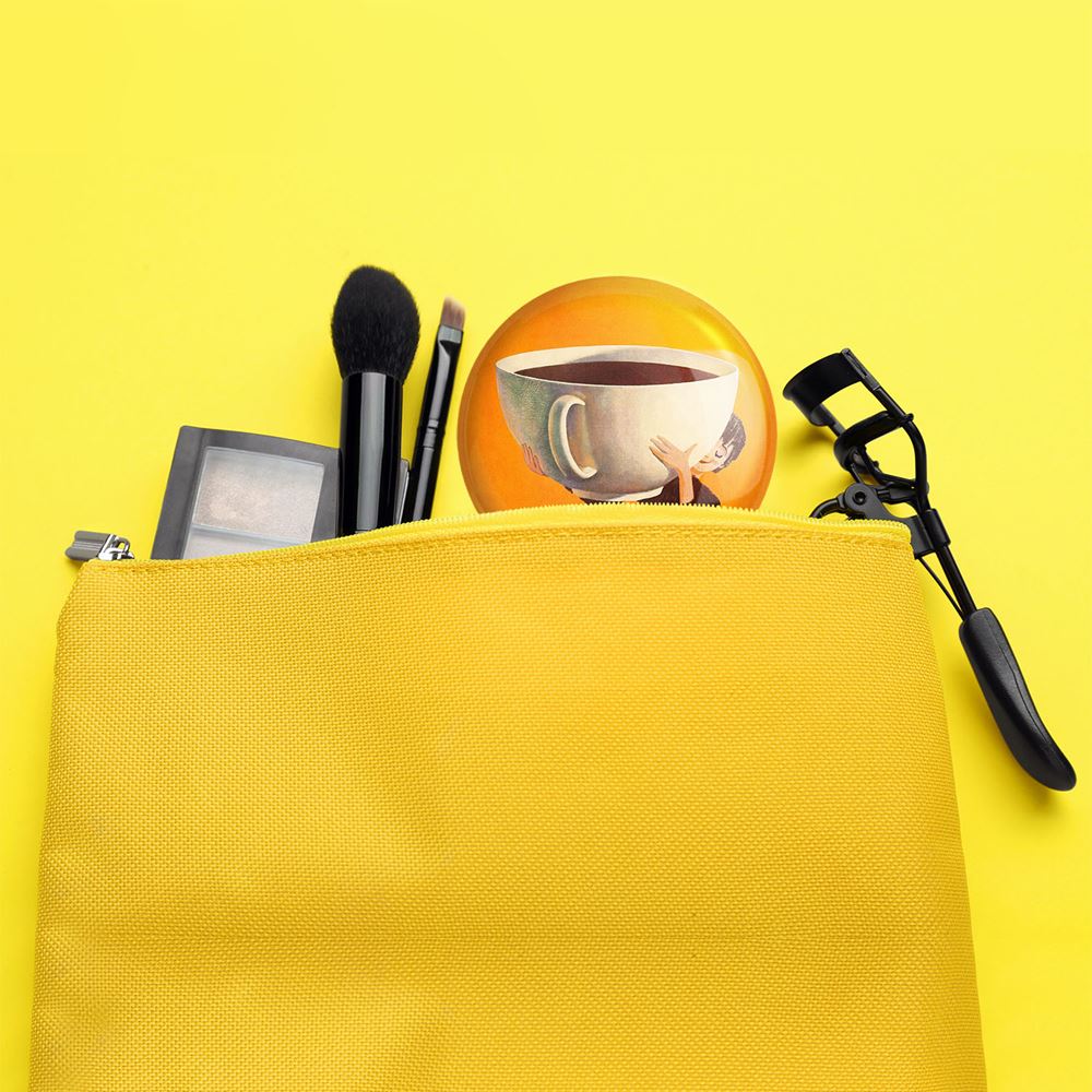 آینه های جیبی قهوه Coffee خندالو دایره ای به قطر 7.5 سانتی متر می باشد که نه خیلی بزرگ و غیر قابل استفاده در کیف آرایشی ست و نه خیلی کوچک که تصویر خاصی در آن مشاهده نشود. سایزی استاندارد و کارآمد دارد و مناسب قرار گیری در کیف لوازم آرایش و کیف های کوچک دستی نیز هست.