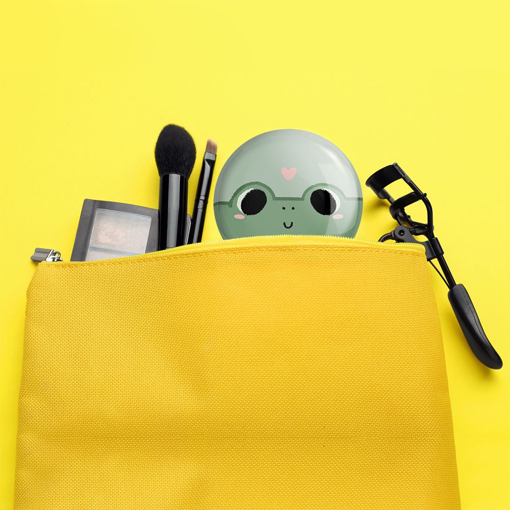 آینه های جیبی قورباغه خندالو دایره ای به قطر 7.5 سانتی متر می باشد که نه خیلی بزرگ و غیر قابل استفاده در کیف آرایشی ست و نه خیلی کوچک که تصویر خاصی در آن مشاهده نشود. سایزی استاندارد و کارآمد دارد و مناسب قرار گیری در کیف لوازم آرایش و کیف های کوچک دستی نیز هست.