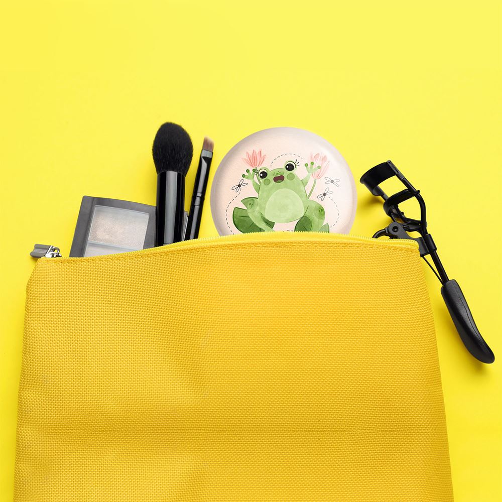 آینه های جیبی قورباغه خندالو دایره ای به قطر 7.5 سانتی متر می باشد که نه خیلی بزرگ و غیر قابل استفاده در کیف آرایشی ست و نه خیلی کوچک که تصویر خاصی در آن مشاهده نشود. سایزی استاندارد و کارآمد دارد و مناسب قرار گیری در کیف لوازم آرایش و کیف های کوچک دستی نیز هست.