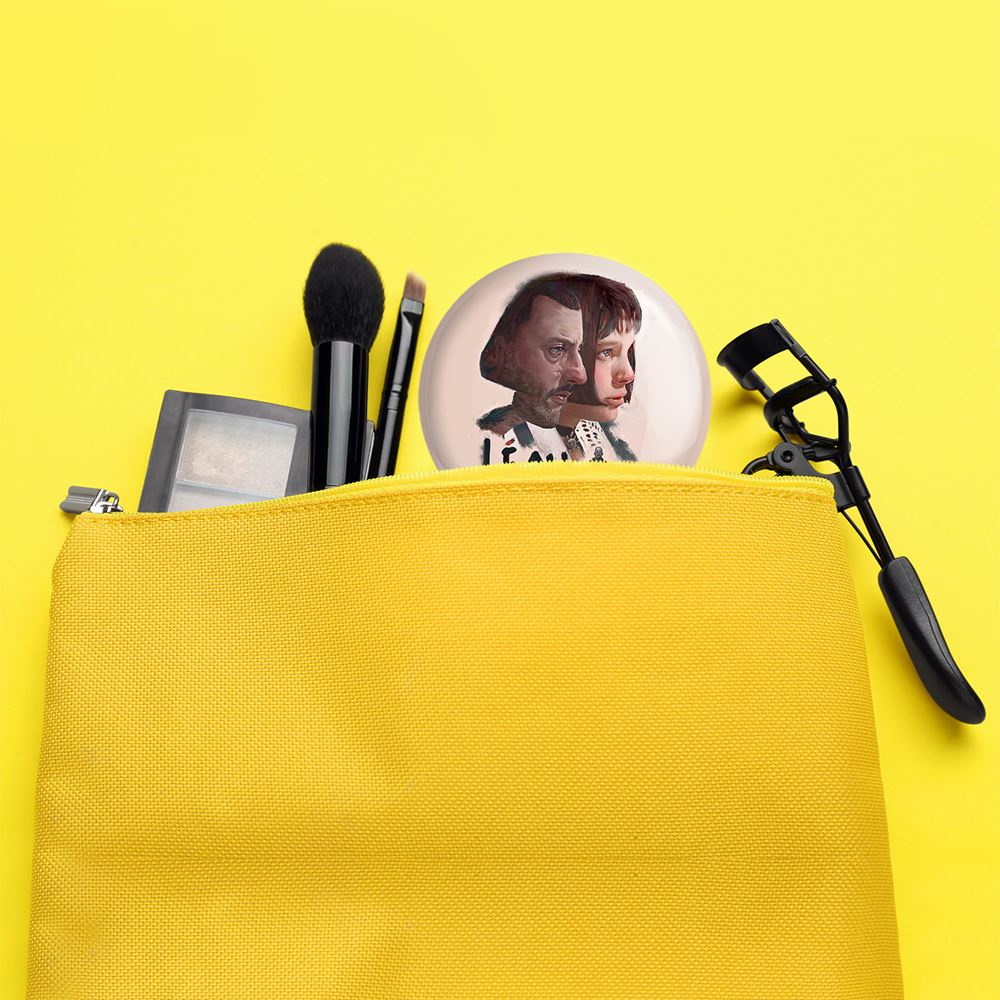 آینه های جیبی لئون و ماتیلدا خندالو دایره ای به قطر 7.5 سانتی متر می باشد که نه خیلی بزرگ و غیر قابل استفاده در کیف آرایشی ست و نه خیلی کوچک که تصویر خاصی در آن مشاهده نشود. سایزی استاندارد و کارآمد دارد و مناسب قرار گیری در کیف لوازم آرایش و کیف های کوچک دستی نیز هست. بدنه ی آینه جیبی لئون و ماتیلدا در قسمتی که آینه را در بر گرفته فلزی بوده و ظاهر براق و بسیار زیبایی دارد. چاپ طرح در پشت آینه بوسیله چاپگرهای دیجیتال شش رنگ با شفافیت و کیفیتی مثال زدنی انجام گرفته و با روکش لمینت حرارتی پوشیده شده که در مقابل آسیب و خط و خش مقاوم بوده و کیفیت بالایی دارد. آینه های جیبی لئون و ماتیلدا خندالو با تنوع طرحی بسیار بالا، سلیقه هر نوع مخاطبی را تامین میکند.