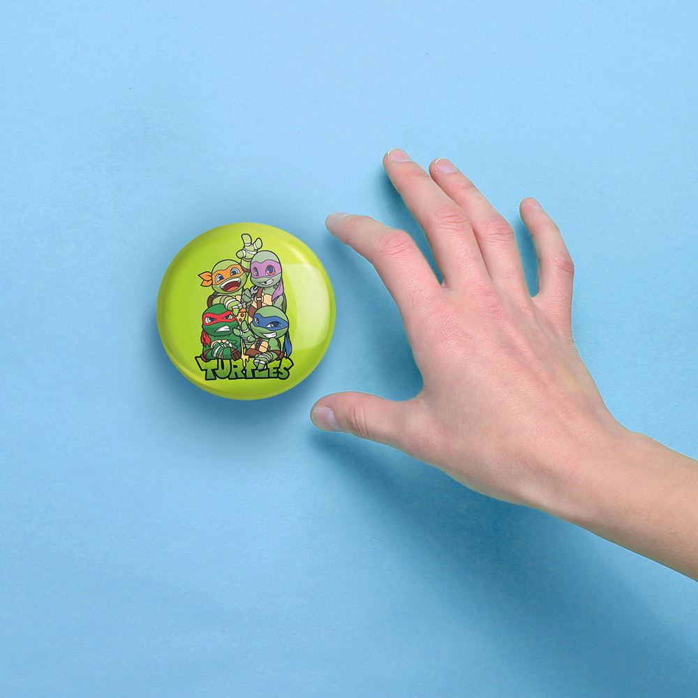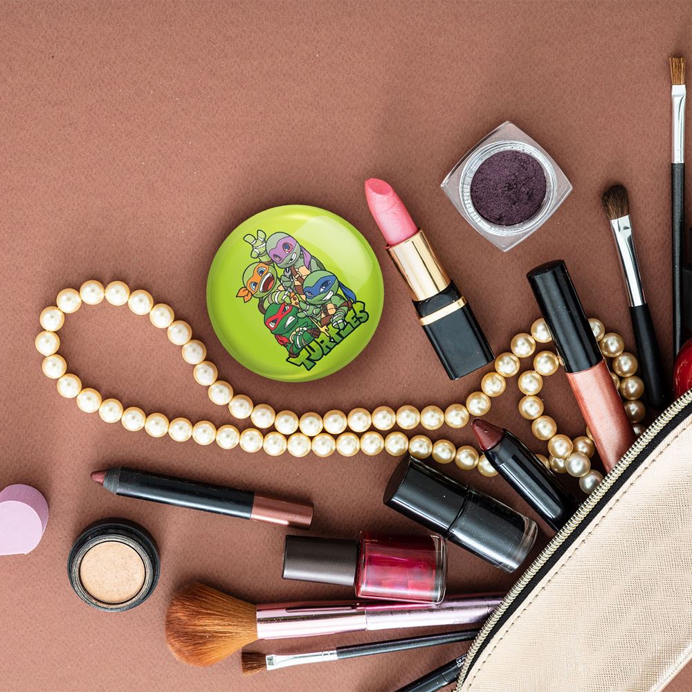 آینه های جیبی لاکپشت های نینجا خندالو دایره ای به قطر 7.5 سانتی متر می باشد که نه خیلی بزرگ و غیر قابل استفاده در کیف آرایشی ست و نه خیلی کوچک که تصویر خاصی در آن مشاهده نشود. سایزی استاندارد و کارآمد دارد و مناسب قرار گیری در کیف لوازم آرایش و کیف های کوچک دستی نیز هست.
