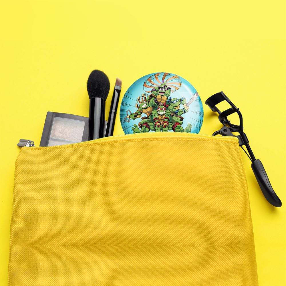 آینه های جیبی لاکپشت های نینجا خندالو دایره ای به قطر 7.5 سانتی متر می باشد که نه خیلی بزرگ و غیر قابل استفاده در کیف آرایشی ست و نه خیلی کوچک که تصویر خاصی در آن مشاهده نشود. سایزی استاندارد و کارآمد دارد و مناسب قرار گیری در کیف لوازم آرایش و کیف های کوچک دستی نیز هست.
