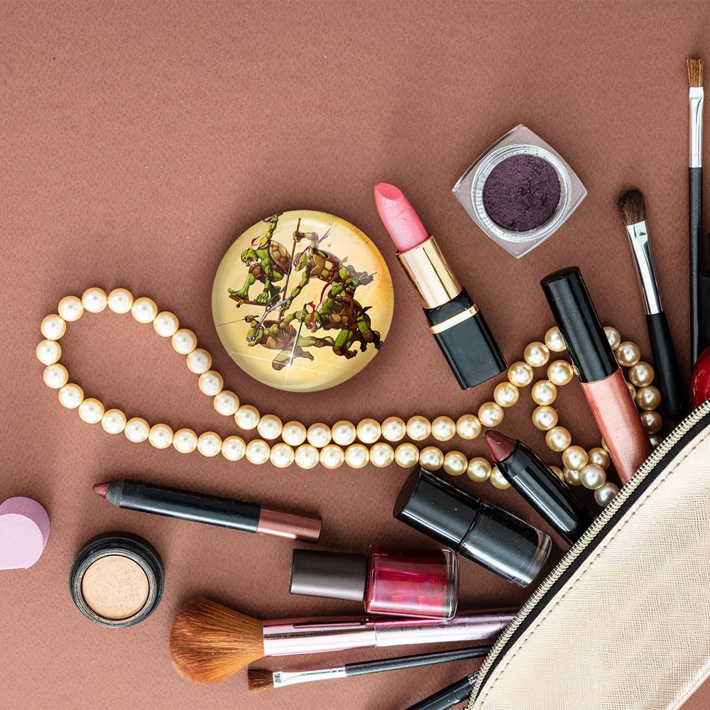 آینه های جیبی لاک پشت های نینجا خندالو دایره ای به قطر 7.5 سانتی متر می باشد که نه خیلی بزرگ و غیر قابل استفاده در کیف آرایشی ست و نه خیلی کوچک که تصویر خاصی در آن مشاهده نشود. سایزی استاندارد و کارآمد دارد و مناسب قرار گیری در کیف لوازم آرایش و کیف های کوچک دستی نیز هست. بدنه ی آینه جیبی لاک پشت های نینجا در قسمتی که آینه را در بر گرفته فلزی بوده و ظاهر براق و بسیار زیبایی دارد. چاپ طرح در پشت آینه بوسیله چاپگرهای دیجیتال شش رنگ با شفافیت و کیفیتی مثال زدنی انجام گرفته و با روکش لمینت حرارتی پوشیده شده که در مقابل آسیب و خط و خش مقاوم بوده و کیفیت بالایی دارد. آینه های جیبی لاک پشت های نینجا خندالو با تنوع طرحی بسیار بالا، سلیقه هر نوع مخاطبی را تامین میکند.