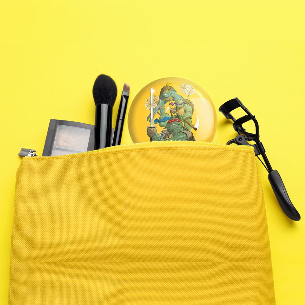 آینه های جیبی لاک پشت های نینجا خندالو دایره ای به قطر 7.5 سانتی متر می باشد که نه خیلی بزرگ و غیر قابل استفاده در کیف آرایشی ست و نه خیلی کوچک که تصویر خاصی در آن مشاهده نشود. سایزی استاندارد و کارآمد دارد و مناسب قرار گیری در کیف لوازم آرایش و کیف های کوچک دستی نیز هست. بدنه ی آینه جیبی لاک پشت های نینجا در قسمتی که آینه را در بر گرفته فلزی بوده و ظاهر براق و بسیار زیبایی دارد. چاپ طرح در پشت آینه بوسیله چاپگرهای دیجیتال شش رنگ با شفافیت و کیفیتی مثال زدنی انجام گرفته و با روکش لمینت حرارتی پوشیده شده که در مقابل آسیب و خط و خش مقاوم بوده و کیفیت بالایی دارد. آینه های جیبی لاک پشت های نینجا خندالو با تنوع طرحی بسیار بالا، سلیقه هر نوع مخاطبی را تامین میکند.