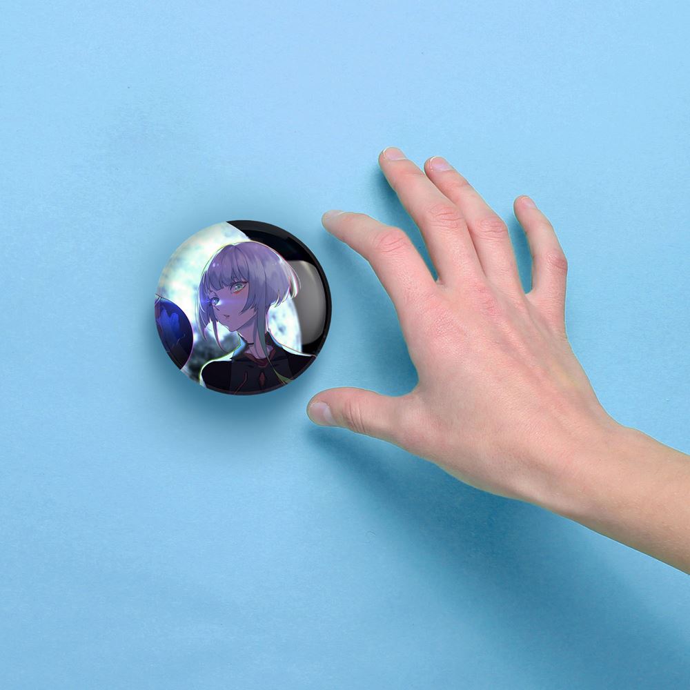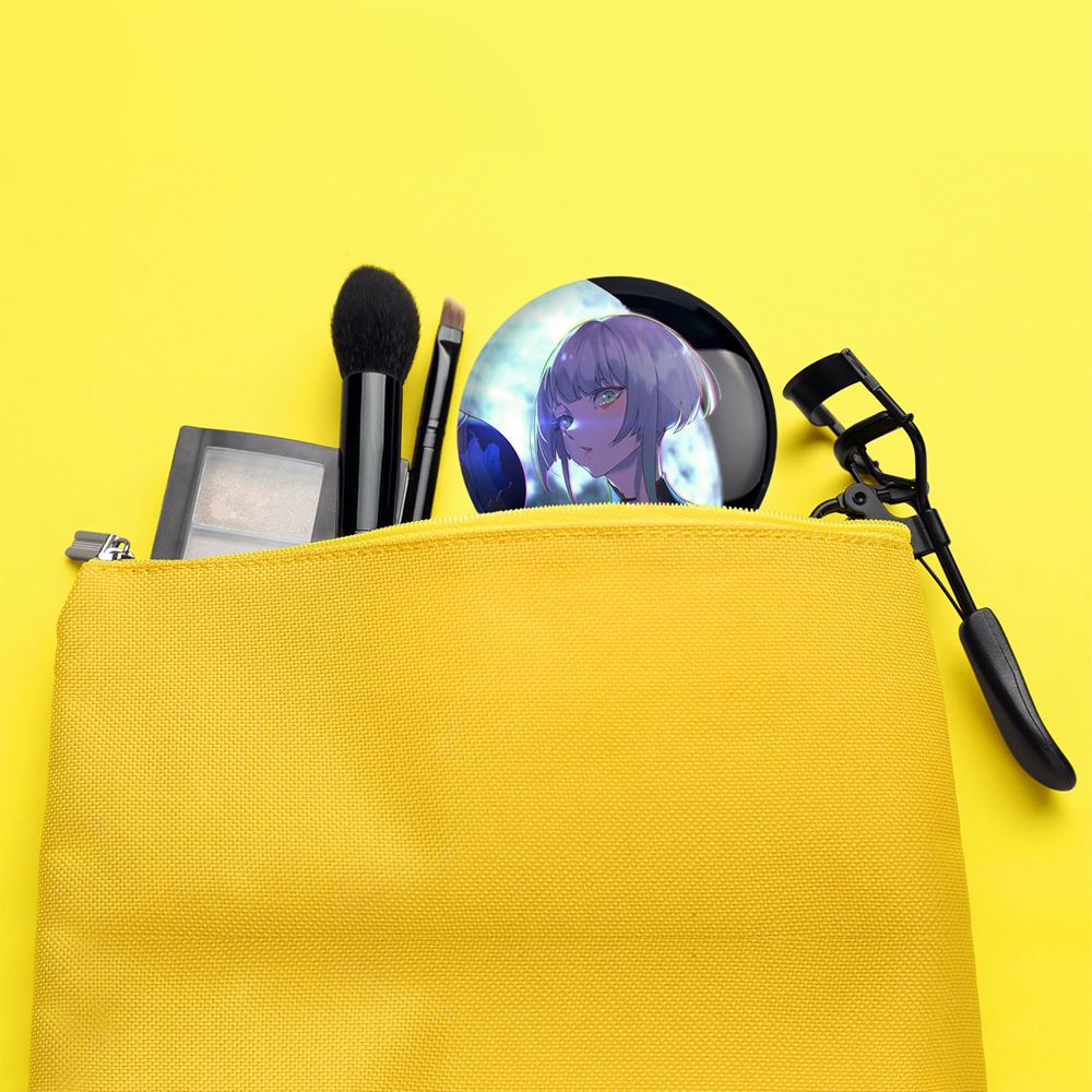 آینه های جیبی لوسی انیمه سایبرپانک خندالو دایره ای به قطر 7.5 سانتی متر می باشد که نه خیلی بزرگ و غیر قابل استفاده در کیف آرایشی ست و نه خیلی کوچک که تصویر خاصی در آن مشاهده نشود. سایزی استاندارد و کارآمد دارد و مناسب قرار گیری در کیف لوازم آرایش و کیف های کوچک دستی نیز هست.