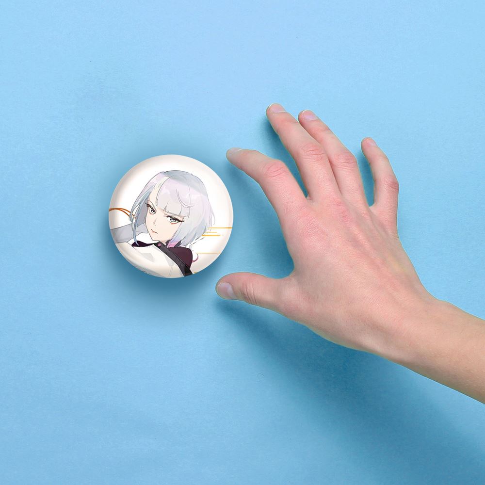 آینه های جیبی لوسی انیمه سایبرپانک خندالو دایره ای به قطر 7.5 سانتی متر می باشد که نه خیلی بزرگ و غیر قابل استفاده در کیف آرایشی ست و نه خیلی کوچک که تصویر خاصی در آن مشاهده نشود. سایزی استاندارد و کارآمد دارد و مناسب قرار گیری در کیف لوازم آرایش و کیف های کوچک دستی نیز هست.