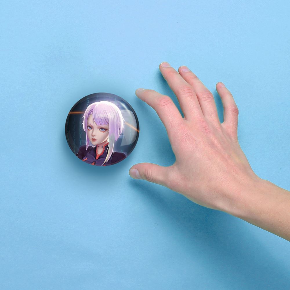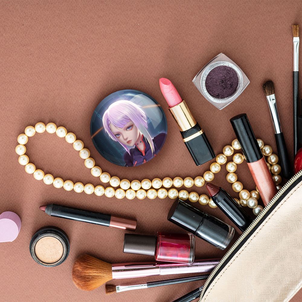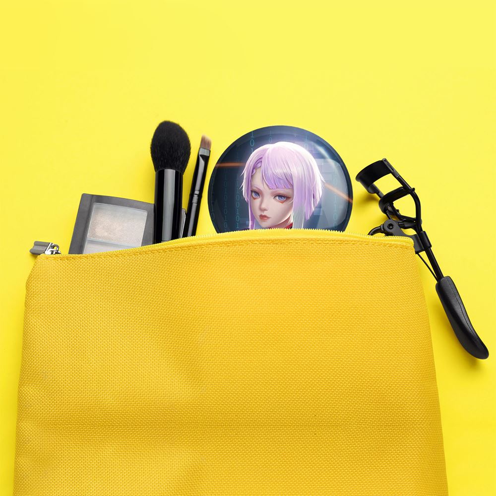 آینه های جیبی لوسی انیمه سایبرپانک خندالو دایره ای به قطر 7.5 سانتی متر می باشد که نه خیلی بزرگ و غیر قابل استفاده در کیف آرایشی ست و نه خیلی کوچک که تصویر خاصی در آن مشاهده نشود. سایزی استاندارد و کارآمد دارد و مناسب قرار گیری در کیف لوازم آرایش و کیف های کوچک دستی نیز هست.