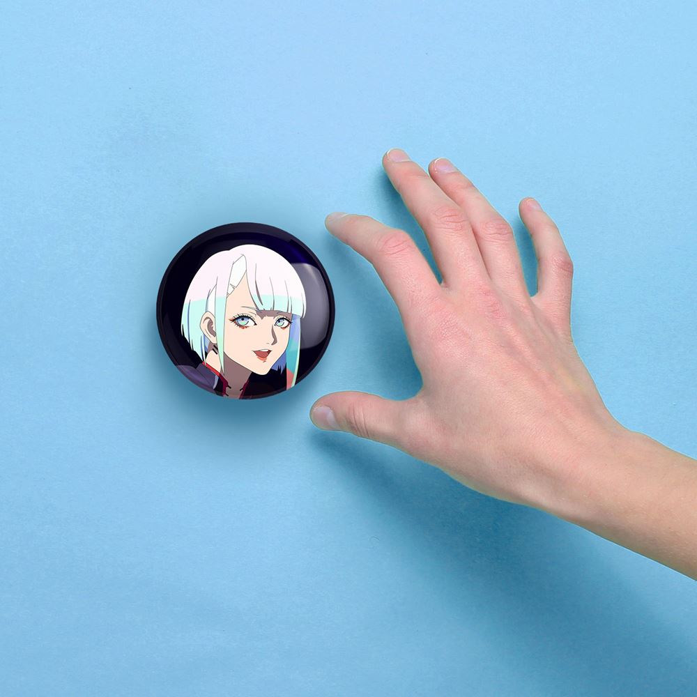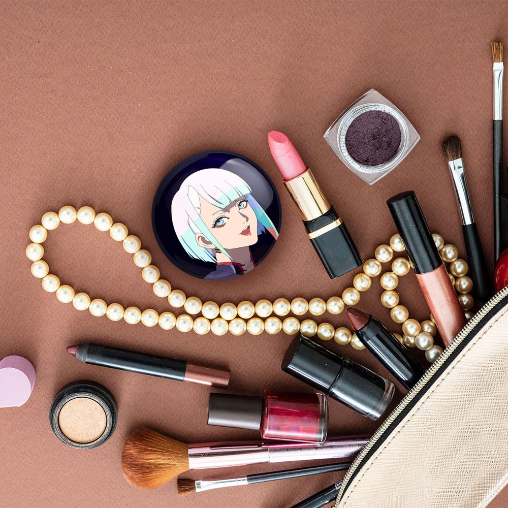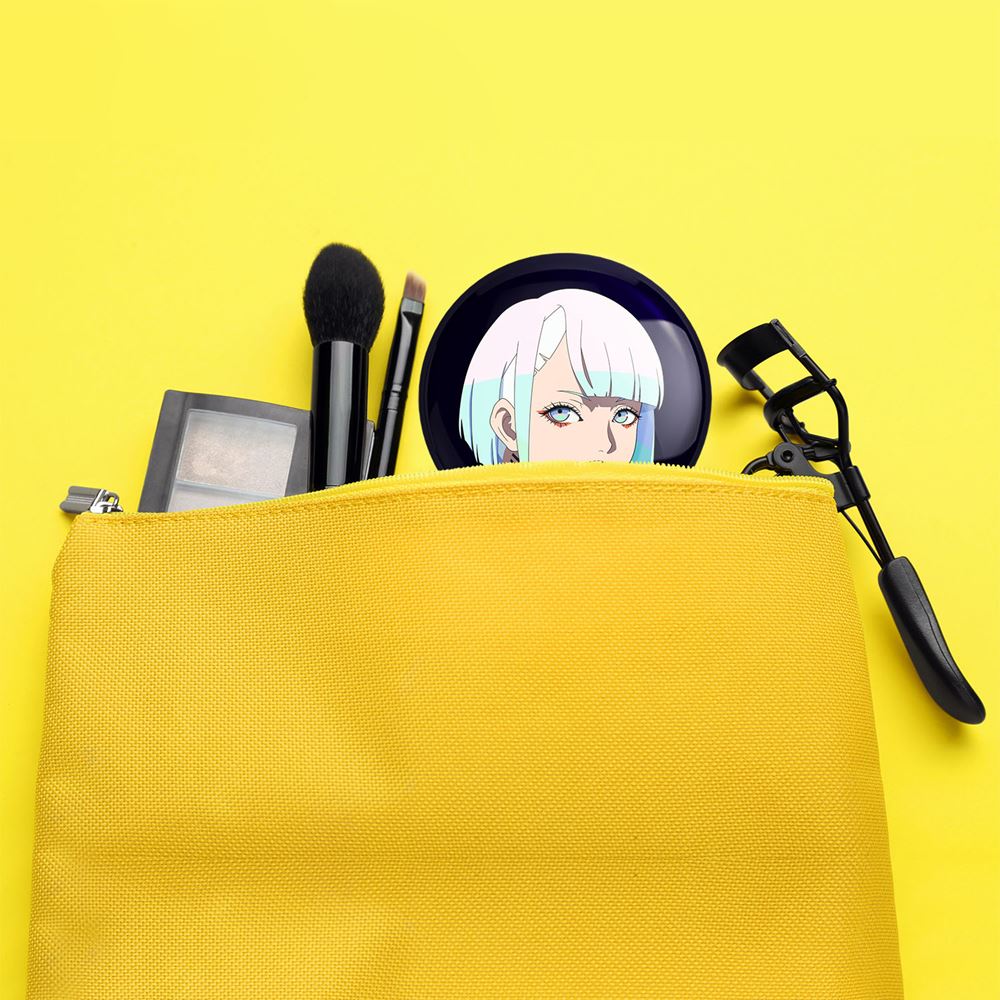 آینه های جیبی لوسی انیمه سایبرپانک خندالو دایره ای به قطر 7.5 سانتی متر می باشد که نه خیلی بزرگ و غیر قابل استفاده در کیف آرایشی ست و نه خیلی کوچک که تصویر خاصی در آن مشاهده نشود. سایزی استاندارد و کارآمد دارد و مناسب قرار گیری در کیف لوازم آرایش و کیف های کوچک دستی نیز هست.
