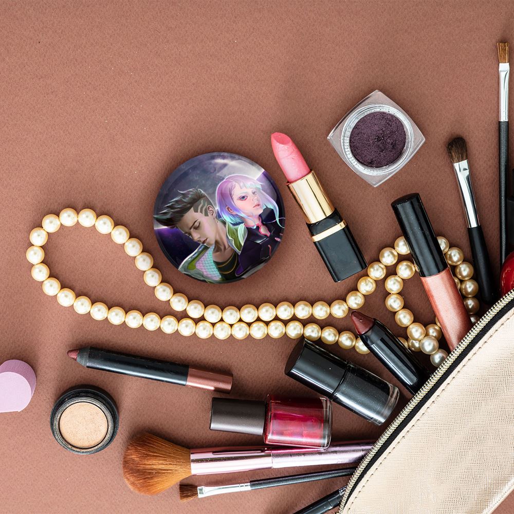 آینه های جیبی لوسی و دیوید انیمه سایبرپانک خندالو دایره ای به قطر 7.5 سانتی متر می باشد که نه خیلی بزرگ و غیر قابل استفاده در کیف آرایشی ست و نه خیلی کوچک که تصویر خاصی در آن مشاهده نشود. سایزی استاندارد و کارآمد دارد و مناسب قرار گیری در کیف لوازم آرایش و کیف های کوچک دستی نیز هست.