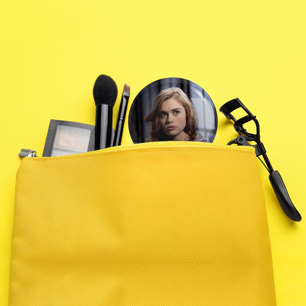 آینه های جیبی لیدیا سریال تین ولف Teen Wolf خندالو دایره ای به قطر 7.5 سانتی متر می باشد که نه خیلی بزرگ و غیر قابل استفاده در کیف آرایشی ست و نه خیلی کوچک که تصویر خاصی در آن مشاهده نشود. سایزی استاندارد و کارآمد دارد و مناسب قرار گیری در کیف لوازم آرایش و کیف های کوچک دستی نیز هست.