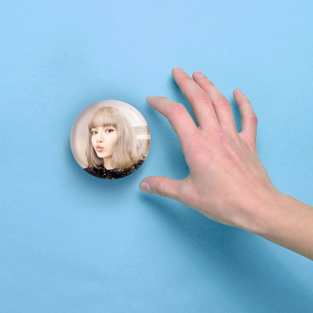 آینه های جیبی لیسا بلک پینک Black Pink خندالو دایره ای به قطر 7.5 سانتی متر می باشد که نه خیلی بزرگ و غیر قابل استفاده در کیف آرایشی ست و نه خیلی کوچک که تصویر خاصی در آن مشاهده نشود. سایزی استاندارد و کارآمد دارد و مناسب قرار گیری در کیف لوازم آرایش و کیف های کوچک دستی نیز هست.