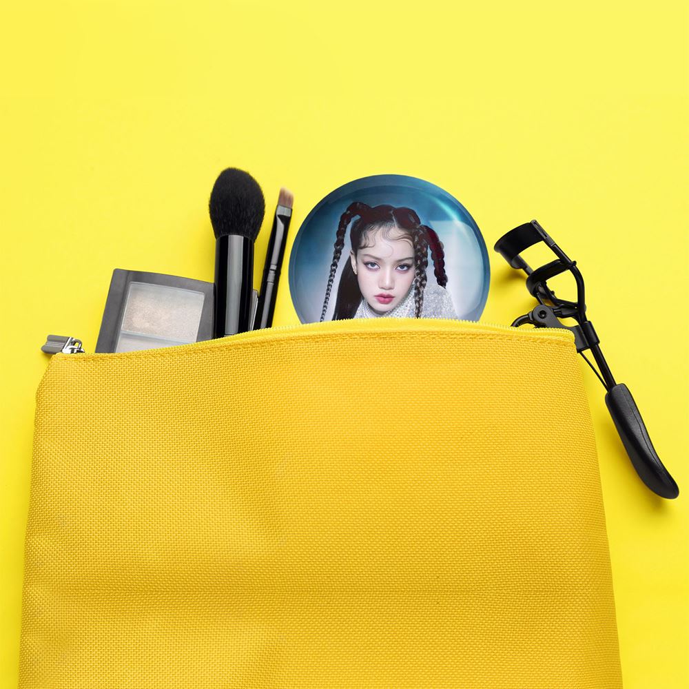 آینه های جیبی لیسا بلک پینک Black Pink خندالو دایره ای به قطر 7.5 سانتی متر می باشد که نه خیلی بزرگ و غیر قابل استفاده در کیف آرایشی ست و نه خیلی کوچک که تصویر خاصی در آن مشاهده نشود. سایزی استاندارد و کارآمد دارد و مناسب قرار گیری در کیف لوازم آرایش و کیف های کوچک دستی نیز هست.