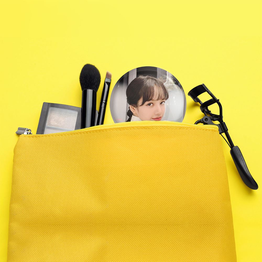 آینه های جیبی لیسا بلک پینک Black Pink خندالو دایره ای به قطر 7.5 سانتی متر می باشد که نه خیلی بزرگ و غیر قابل استفاده در کیف آرایشی ست و نه خیلی کوچک که تصویر خاصی در آن مشاهده نشود. سایزی استاندارد و کارآمد دارد و مناسب قرار گیری در کیف لوازم آرایش و کیف های کوچک دستی نیز هست.