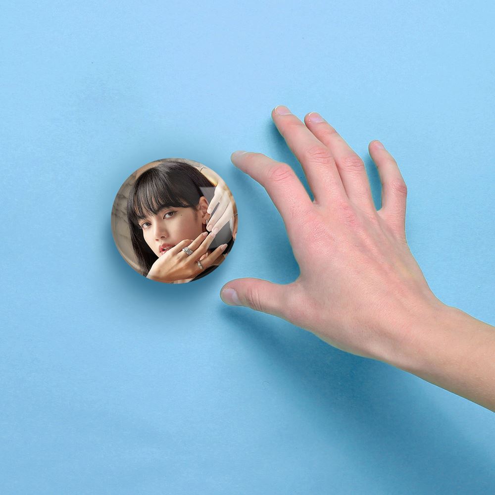 آینه های جیبی لیسا بلک پینک Black Pink خندالو دایره ای به قطر 7.5 سانتی متر می باشد که نه خیلی بزرگ و غیر قابل استفاده در کیف آرایشی ست و نه خیلی کوچک که تصویر خاصی در آن مشاهده نشود. سایزی استاندارد و کارآمد دارد و مناسب قرار گیری در کیف لوازم آرایش و کیف های کوچک دستی نیز هست.