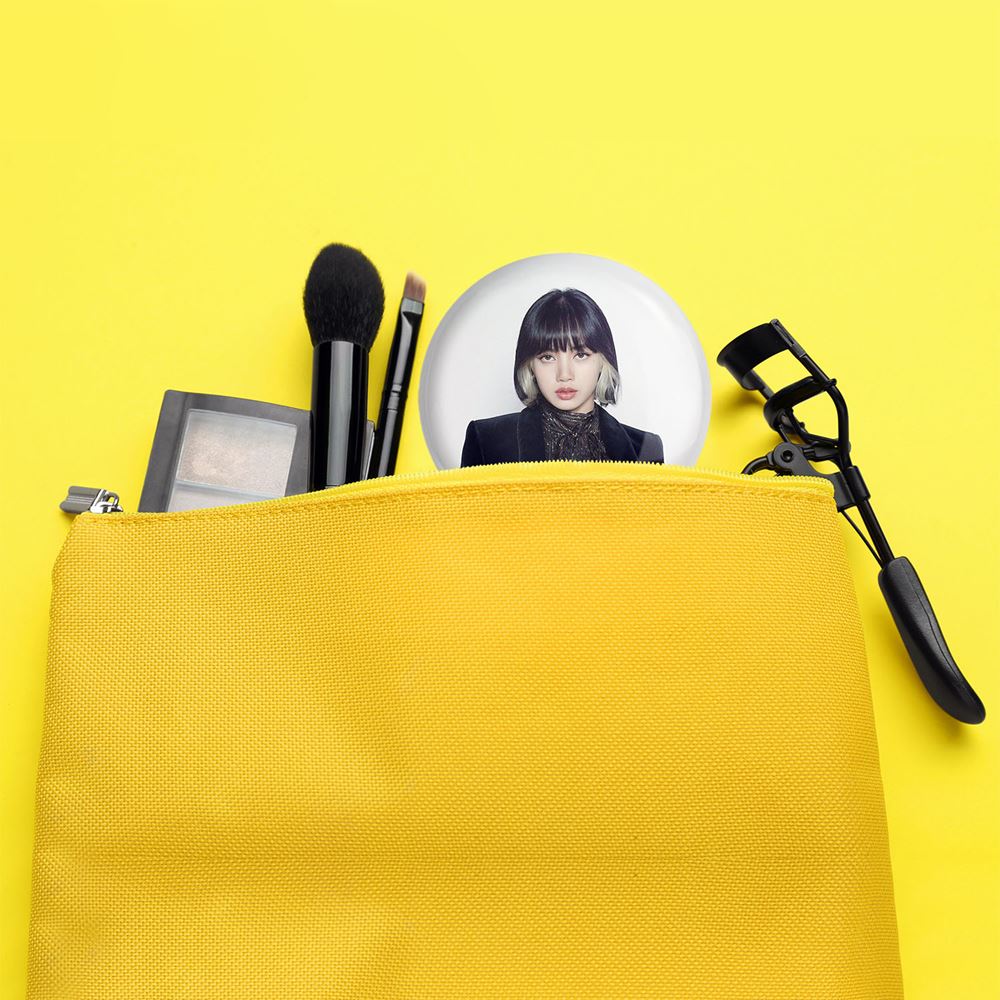 آینه های جیبی لیسا بلک پینک Black Pink خندالو دایره ای به قطر 7.5 سانتی متر می باشد که نه خیلی بزرگ و غیر قابل استفاده در کیف آرایشی ست و نه خیلی کوچک که تصویر خاصی در آن مشاهده نشود. سایزی استاندارد و کارآمد دارد و مناسب قرار گیری در کیف لوازم آرایش و کیف های کوچک دستی نیز هست.