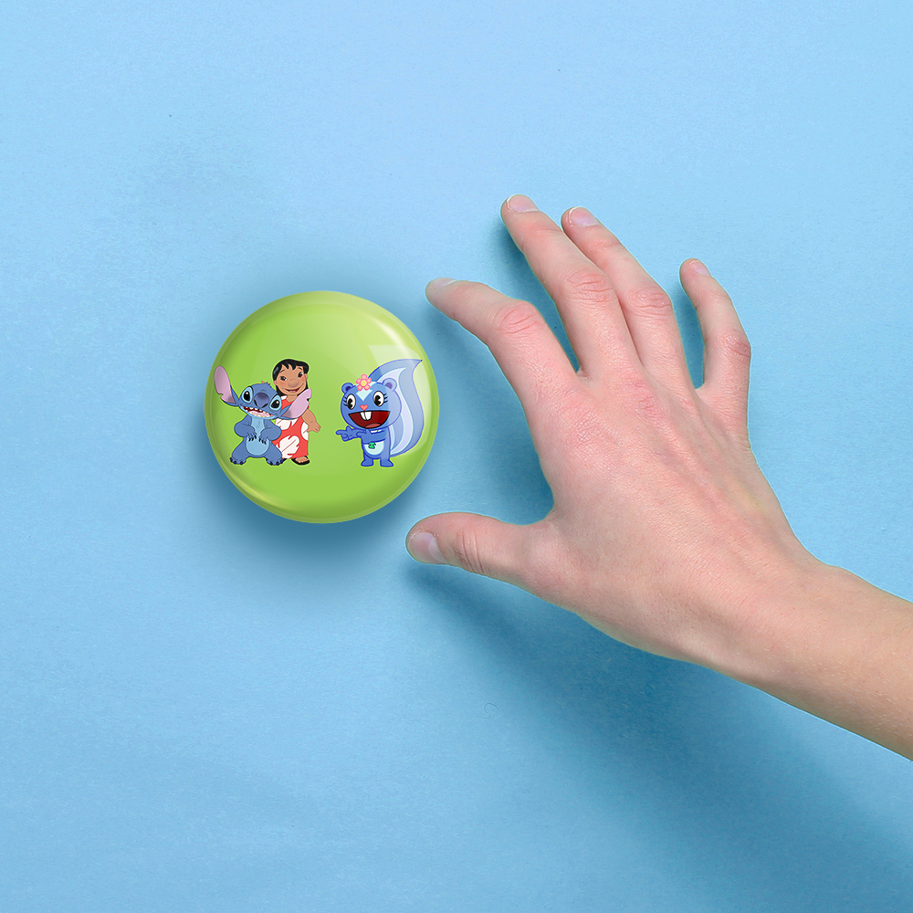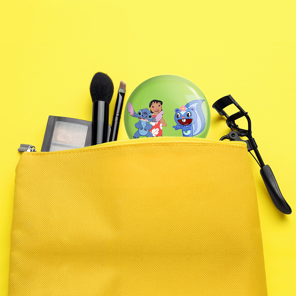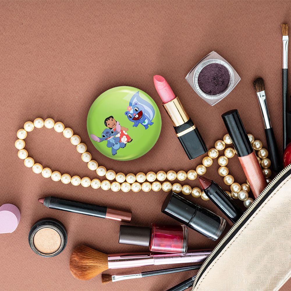 آینه های جیبی لیلو و استیچ خندالو دایره ای به قطر 7.5 سانتی متر می باشد که نه خیلی بزرگ و غیر قابل استفاده در کیف آرایشی ست و نه خیلی کوچک که تصویر خاصی در آن مشاهده نشود. سایزی استاندارد و کارآمد دارد و مناسب قرار گیری در کیف لوازم آرایش و کیف های کوچک دستی نیز هست.