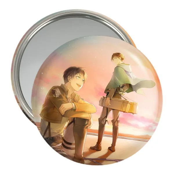 آینه های جیبی لیوای و ارن انیمه اتک آن تایتان Attack on Titan خندالو دایره ای به قطر 7.5 سانتی متر می باشد که نه خیلی بزرگ و غیر قابل استفاده در کیف آرایشی ست و نه خیلی کوچک که تصویر خاصی در آن مشاهده نشود. سایزی استاندارد و کارآمد دارد و مناسب قرار گیری در کیف لوازم آرایش و کیف های کوچک دستی نیز هست. بدنه ی آینه جیبی لیوای و ارن انیمه اتک آن تایتان Attack on Titan در قسمتی که آینه را در بر گرفته فلزی بوده و ظاهر براق و بسیار زیبایی دارد. چاپ طرح در پشت آینه بوسیله چاپگرهای دیجیتال شش رنگ با شفافیت و کیفیتی مثال زدنی انجام گرفته و با روکش لمینت حرارتی پوشیده شده که در مقابل آسیب و خط و خش مقاوم بوده و کیفیت بالایی دارد. آینه های جیبی لیوای و ارن انیمه اتک آن تایتان Attack on Titan خندالو با تنوع طرحی بسیار بالا، سلیقه هر نوع مخاطبی را تامین میکند.