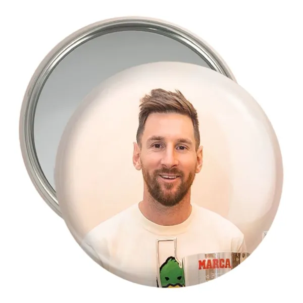 آینه های جیبی لیونل مسی خندالو دایره ای به قطر 7.5 سانتی متر می باشد که نه خیلی بزرگ و غیر قابل استفاده در کیف آرایشی ست و نه خیلی کوچک که تصویر خاصی در آن مشاهده نشود. سایزی استاندارد و کارآمد دارد و مناسب قرار گیری در کیف لوازم آرایش و کیف های کوچک دستی نیز هست.