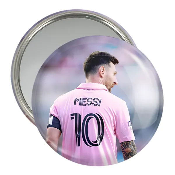 آینه های جیبی لیونل مسی خندالو دایره ای به قطر 7.5 سانتی متر می باشد که نه خیلی بزرگ و غیر قابل استفاده در کیف آرایشی ست و نه خیلی کوچک که تصویر خاصی در آن مشاهده نشود. سایزی استاندارد و کارآمد دارد و مناسب قرار گیری در کیف لوازم آرایش و کیف های کوچک دستی نیز هست.