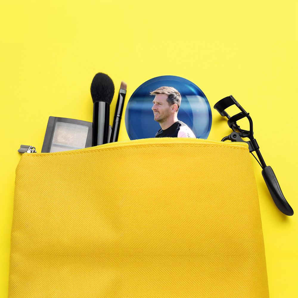 آینه های جیبی لیونل مسی خندالو دایره ای به قطر 7.5 سانتی متر می باشد که نه خیلی بزرگ و غیر قابل استفاده در کیف آرایشی ست و نه خیلی کوچک که تصویر خاصی در آن مشاهده نشود. سایزی استاندارد و کارآمد دارد و مناسب قرار گیری در کیف لوازم آرایش و کیف های کوچک دستی نیز هست.