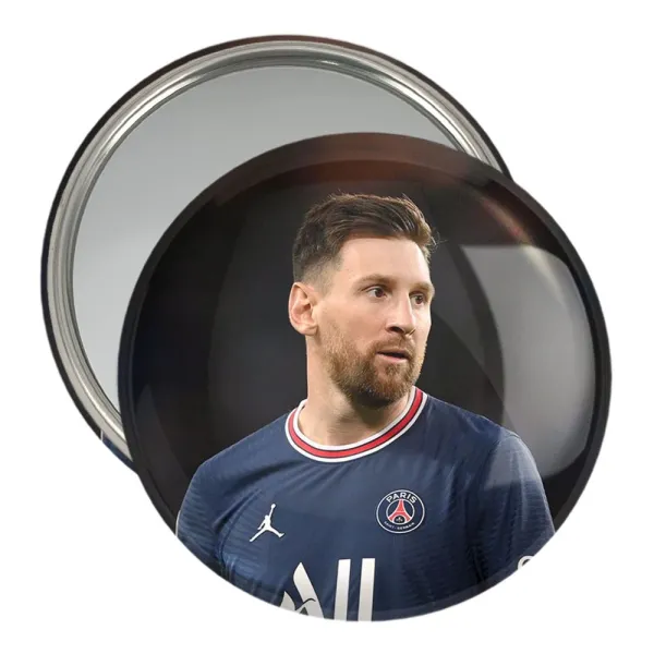 آینه های جیبی لیونل مسی خندالو دایره ای به قطر 7.5 سانتی متر می باشد که نه خیلی بزرگ و غیر قابل استفاده در کیف آرایشی ست و نه خیلی کوچک که تصویر خاصی در آن مشاهده نشود. سایزی استاندارد و کارآمد دارد و مناسب قرار گیری در کیف لوازم آرایش و کیف های کوچک دستی نیز هست.