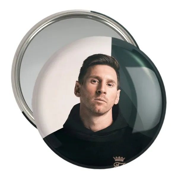 آینه های جیبی لیونل مسی خندالو دایره ای به قطر 7.5 سانتی متر می باشد که نه خیلی بزرگ و غیر قابل استفاده در کیف آرایشی ست و نه خیلی کوچک که تصویر خاصی در آن مشاهده نشود. سایزی استاندارد و کارآمد دارد و مناسب قرار گیری در کیف لوازم آرایش و کیف های کوچک دستی نیز هست.