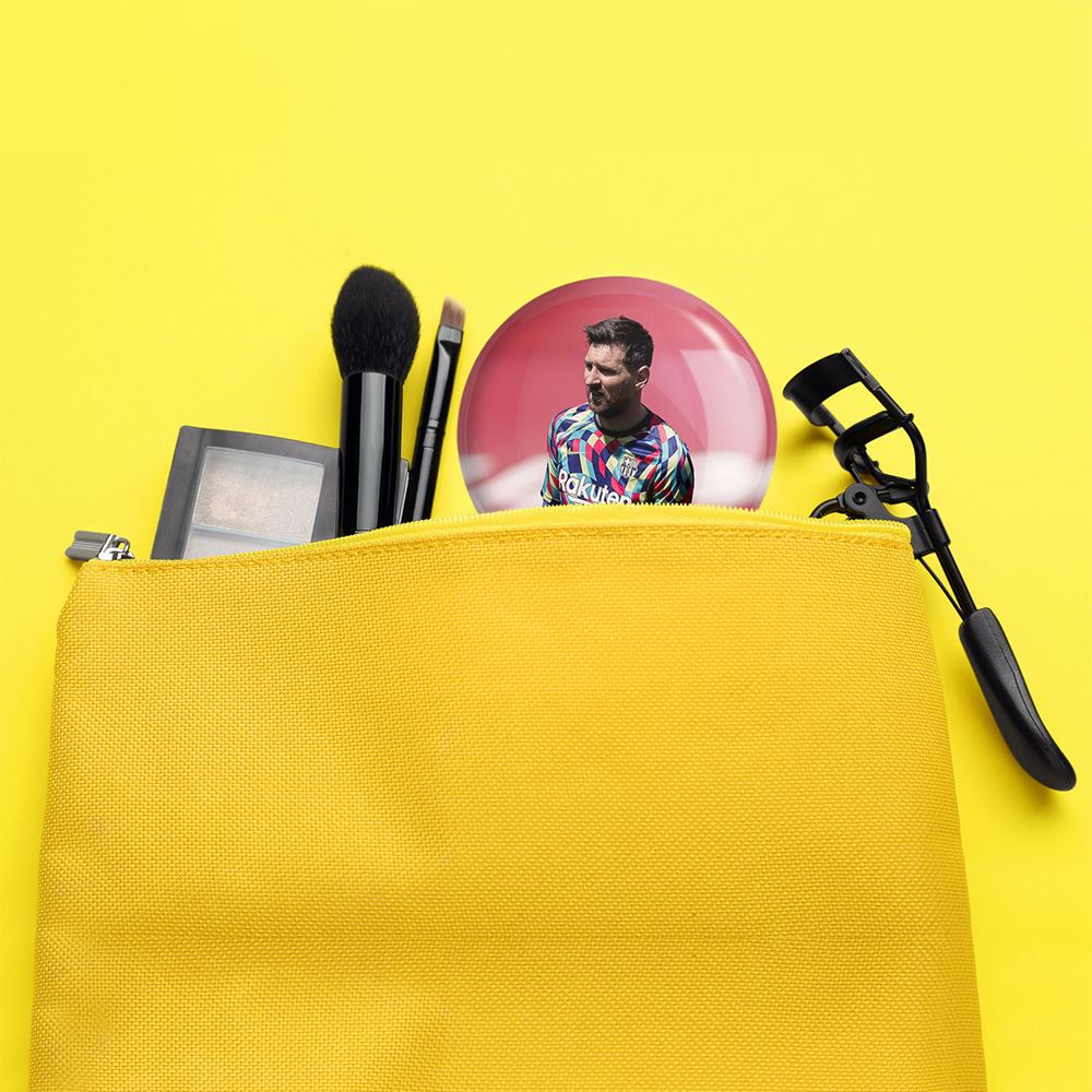 آینه های جیبی لیونل مسی خندالو دایره ای به قطر 7.5 سانتی متر می باشد که نه خیلی بزرگ و غیر قابل استفاده در کیف آرایشی ست و نه خیلی کوچک که تصویر خاصی در آن مشاهده نشود. سایزی استاندارد و کارآمد دارد و مناسب قرار گیری در کیف لوازم آرایش و کیف های کوچک دستی نیز هست.
