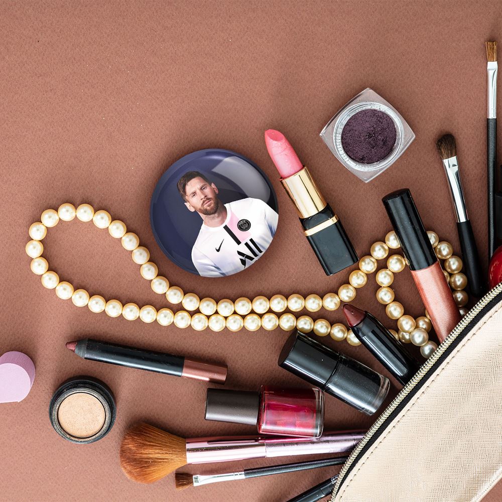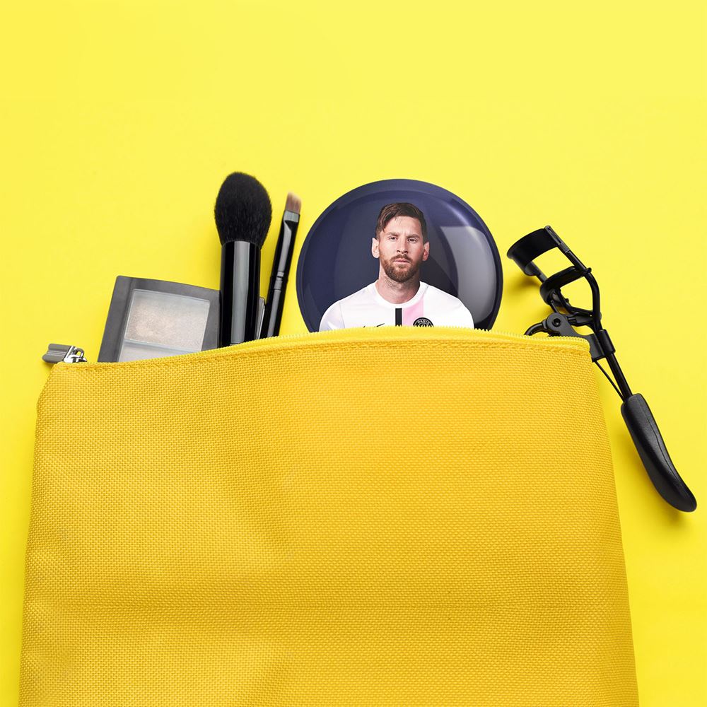 آینه های جیبی لیونل مسی خندالو دایره ای به قطر 7.5 سانتی متر می باشد که نه خیلی بزرگ و غیر قابل استفاده در کیف آرایشی ست و نه خیلی کوچک که تصویر خاصی در آن مشاهده نشود. سایزی استاندارد و کارآمد دارد و مناسب قرار گیری در کیف لوازم آرایش و کیف های کوچک دستی نیز هست.