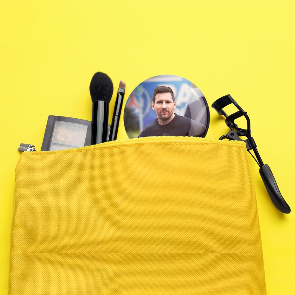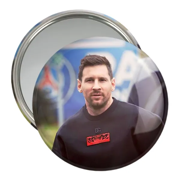 آینه های جیبی لیونل مسی خندالو دایره ای به قطر 7.5 سانتی متر می باشد که نه خیلی بزرگ و غیر قابل استفاده در کیف آرایشی ست و نه خیلی کوچک که تصویر خاصی در آن مشاهده نشود. سایزی استاندارد و کارآمد دارد و مناسب قرار گیری در کیف لوازم آرایش و کیف های کوچک دستی نیز هست.