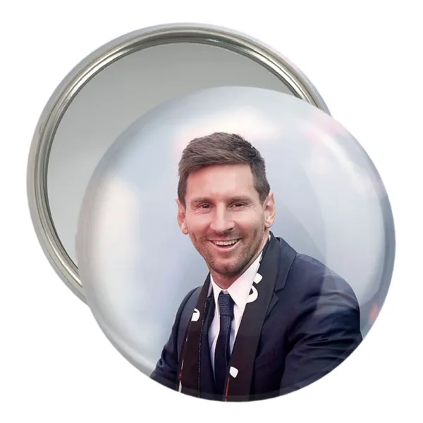 آینه های جیبی لیونل مسی خندالو دایره ای به قطر 7.5 سانتی متر می باشد که نه خیلی بزرگ و غیر قابل استفاده در کیف آرایشی ست و نه خیلی کوچک که تصویر خاصی در آن مشاهده نشود. سایزی استاندارد و کارآمد دارد و مناسب قرار گیری در کیف لوازم آرایش و کیف های کوچک دستی نیز هست.