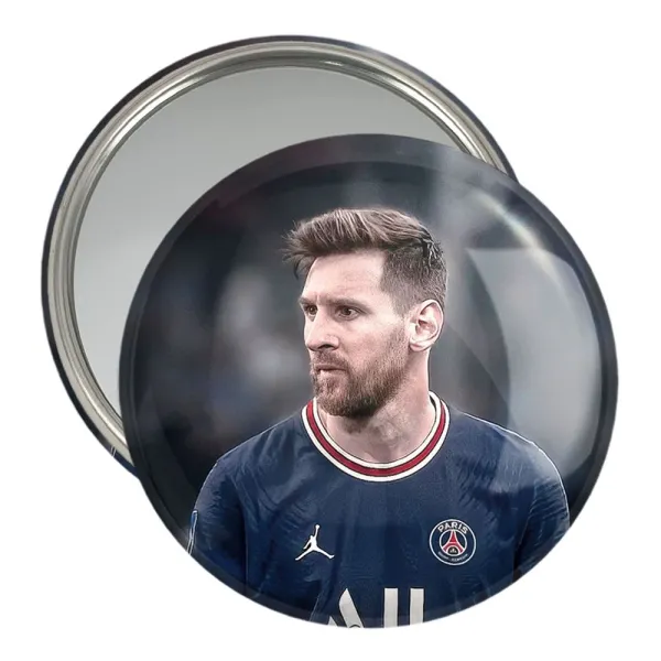 آینه های جیبی لیونل مسی خندالو دایره ای به قطر 7.5 سانتی متر می باشد که نه خیلی بزرگ و غیر قابل استفاده در کیف آرایشی ست و نه خیلی کوچک که تصویر خاصی در آن مشاهده نشود. سایزی استاندارد و کارآمد دارد و مناسب قرار گیری در کیف لوازم آرایش و کیف های کوچک دستی نیز هست.