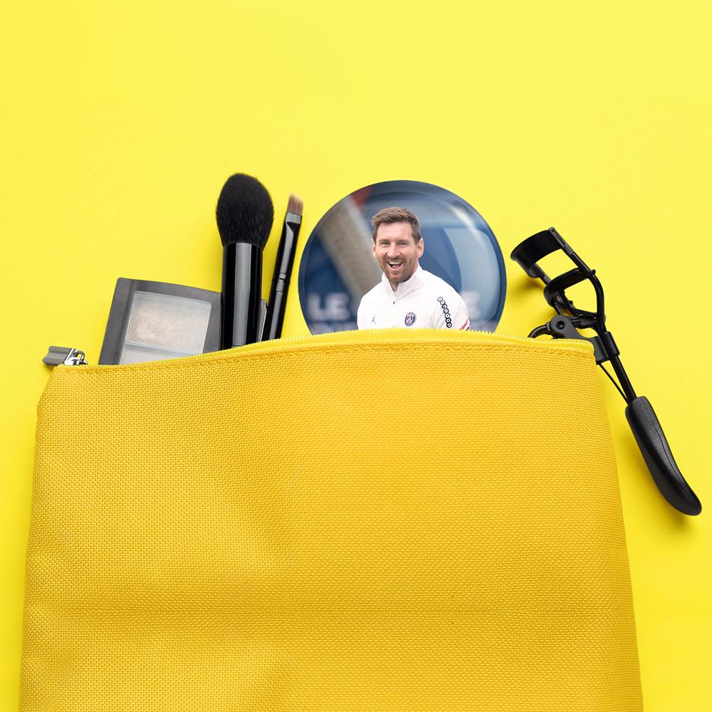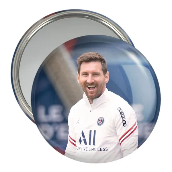 آینه های جیبی لیونل مسی خندالو دایره ای به قطر 7.5 سانتی متر می باشد که نه خیلی بزرگ و غیر قابل استفاده در کیف آرایشی ست و نه خیلی کوچک که تصویر خاصی در آن مشاهده نشود. سایزی استاندارد و کارآمد دارد و مناسب قرار گیری در کیف لوازم آرایش و کیف های کوچک دستی نیز هست.
