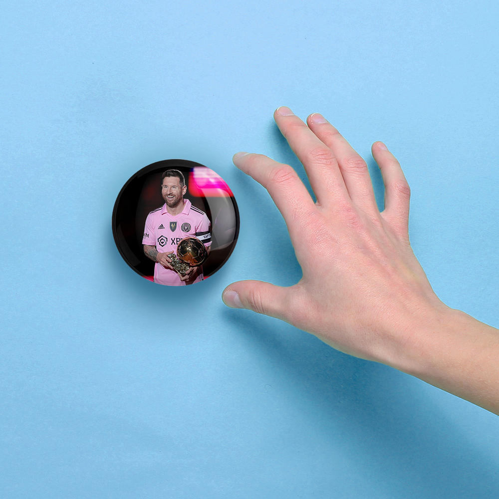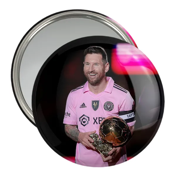 آینه های جیبی لیونل مسی خندالو دایره ای به قطر 7.5 سانتی متر می باشد که نه خیلی بزرگ و غیر قابل استفاده در کیف آرایشی ست و نه خیلی کوچک که تصویر خاصی در آن مشاهده نشود. سایزی استاندارد و کارآمد دارد و مناسب قرار گیری در کیف لوازم آرایش و کیف های کوچک دستی نیز هست.
