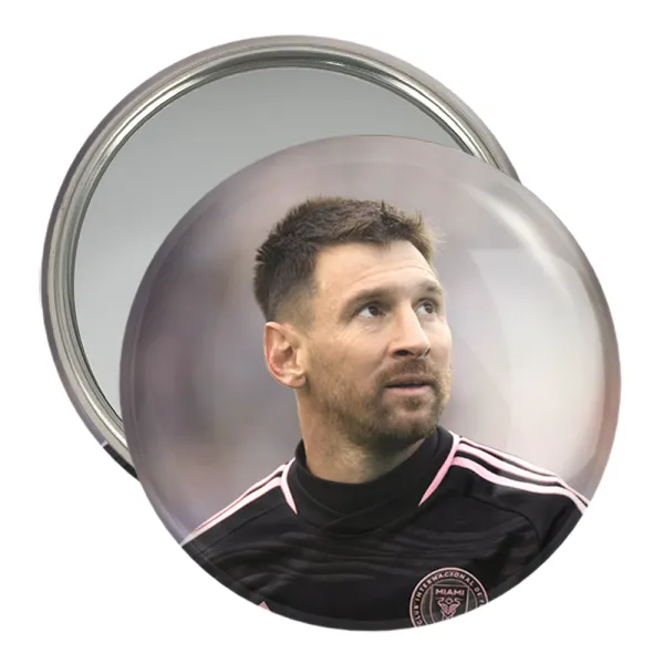 آینه های جیبی لیونل مسی خندالو دایره ای به قطر 7.5 سانتی متر می باشد که نه خیلی بزرگ و غیر قابل استفاده در کیف آرایشی ست و نه خیلی کوچک که تصویر خاصی در آن مشاهده نشود. سایزی استاندارد و کارآمد دارد و مناسب قرار گیری در کیف لوازم آرایش و کیف های کوچک دستی نیز هست.