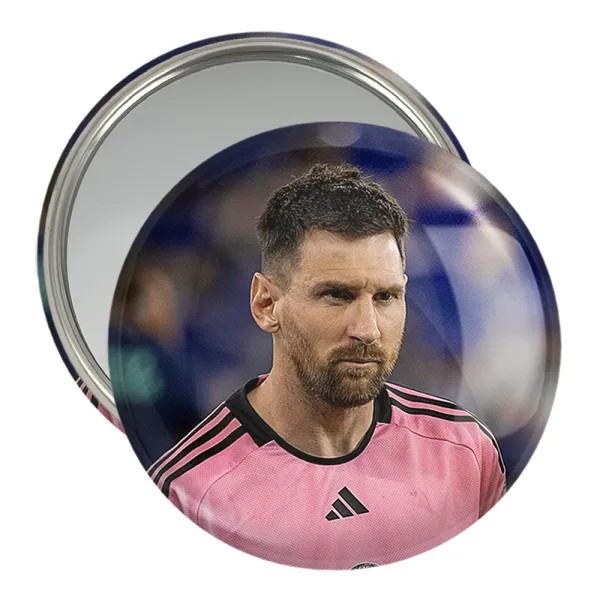 آینه های جیبی لیونل مسی خندالو دایره ای به قطر 7.5 سانتی متر می باشد که نه خیلی بزرگ و غیر قابل استفاده در کیف آرایشی ست و نه خیلی کوچک که تصویر خاصی در آن مشاهده نشود. سایزی استاندارد و کارآمد دارد و مناسب قرار گیری در کیف لوازم آرایش و کیف های کوچک دستی نیز هست.