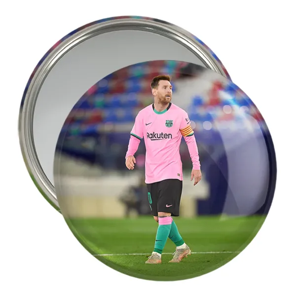 آینه های جیبی لیونل مسی خندالو دایره ای به قطر 7.5 سانتی متر می باشد که نه خیلی بزرگ و غیر قابل استفاده در کیف آرایشی ست و نه خیلی کوچک که تصویر خاصی در آن مشاهده نشود. سایزی استاندارد و کارآمد دارد و مناسب قرار گیری در کیف لوازم آرایش و کیف های کوچک دستی نیز هست.