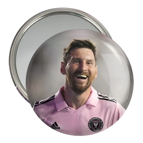 آینه های جیبی لیونل مسی خندالو دایره ای به قطر 7.5 سانتی متر می باشد که نه خیلی بزرگ و غیر قابل استفاده در کیف آرایشی ست و نه خیلی کوچک که تصویر خاصی در آن مشاهده نشود. سایزی استاندارد و کارآمد دارد و مناسب قرار گیری در کیف لوازم آرایش و کیف های کوچک دستی نیز هست.