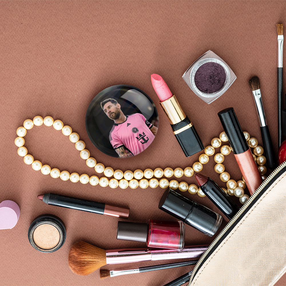 آینه های جیبی لیونل مسی خندالو دایره ای به قطر 7.5 سانتی متر می باشد که نه خیلی بزرگ و غیر قابل استفاده در کیف آرایشی ست و نه خیلی کوچک که تصویر خاصی در آن مشاهده نشود. سایزی استاندارد و کارآمد دارد و مناسب قرار گیری در کیف لوازم آرایش و کیف های کوچک دستی نیز هست.