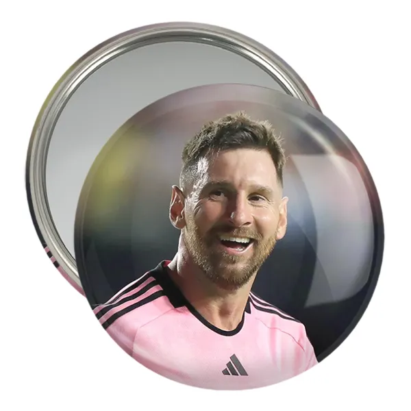 آینه های جیبی لیونل مسی خندالو دایره ای به قطر 7.5 سانتی متر می باشد که نه خیلی بزرگ و غیر قابل استفاده در کیف آرایشی ست و نه خیلی کوچک که تصویر خاصی در آن مشاهده نشود. سایزی استاندارد و کارآمد دارد و مناسب قرار گیری در کیف لوازم آرایش و کیف های کوچک دستی نیز هست.